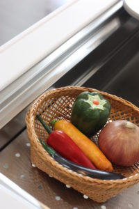 シンクの中で茹でた野菜やパスタの湯切りをするときに