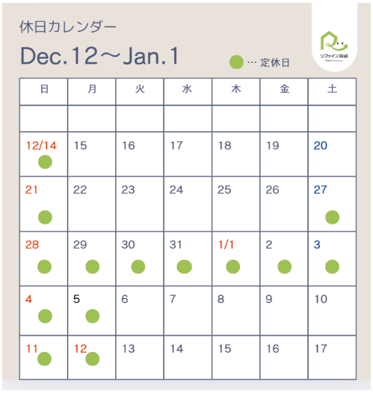 年末年始休日のご案内